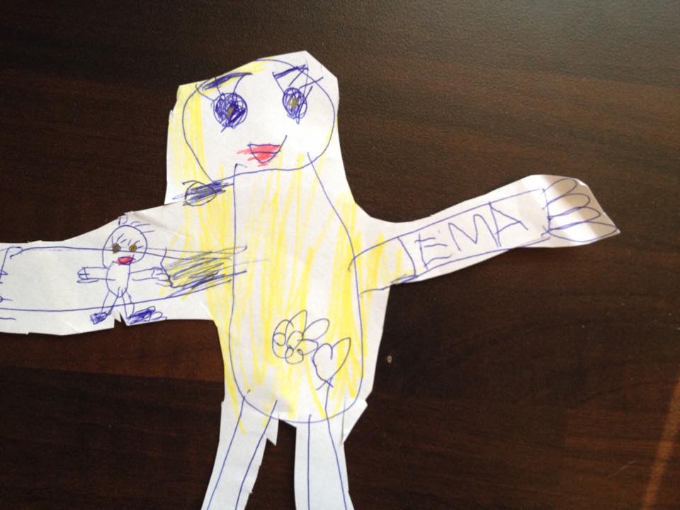 I går var sista tillfället av babymassagen och i brevlådan damp ett paket ned med tillhörande rörande brev och teckning från min fina guddotter. Dagny är fortsatt tillfreds med livet och har fått byta ut sin Von rosenskena mot ett par Frejkabyxor. Hon är så glad och vill verkligen kommunicera med oss och skiner upp som en sol när vi gör härmalekar tillsammans!