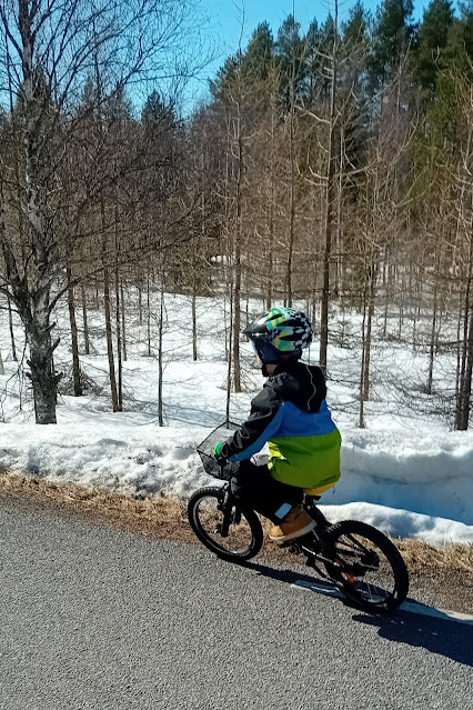Våren hälsade på idag igen. Jag och barnen tog fram våra cyklar.